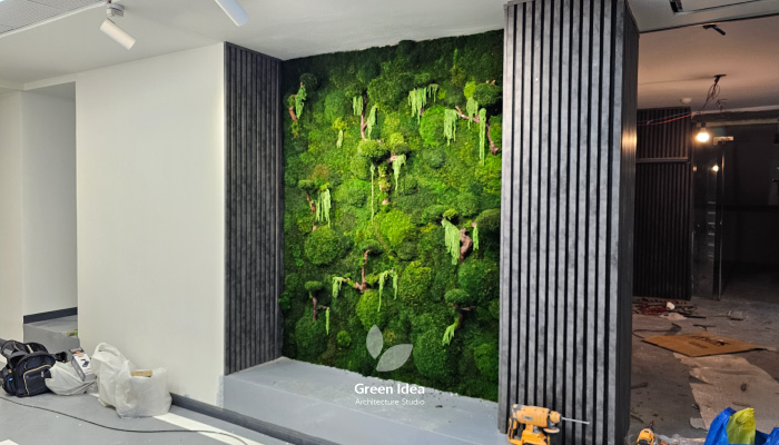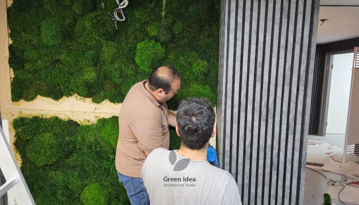 این دیوار خزهای علاوه بر نصب سریع و امکان جابهجایی آسان، هیچ نیازی به آبیاری یا نگهداری ندارد و در عین سادگی، هویتی سبز و ماندگار برای فضای هواپیمایی بهوجود آورده است.